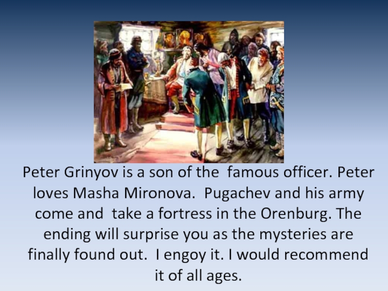 Слайд 4Peter Grinyov is a son of the famous officer. Peter