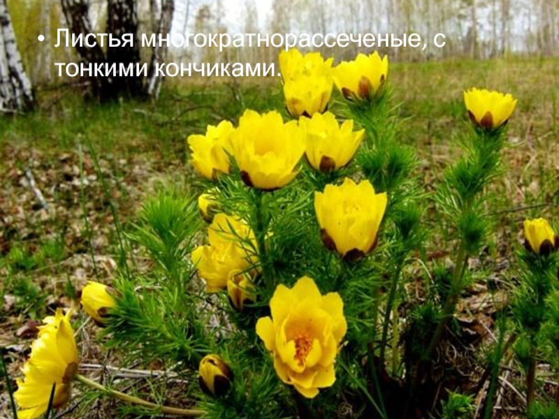 Слайд 3Листья многократнорассеченые, с тонкими кончиками.