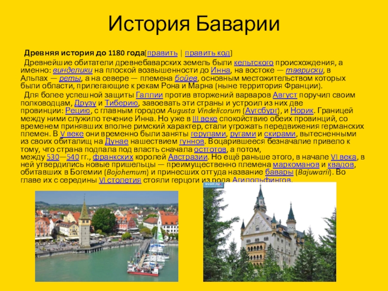 древнебаварских земель были кельтского происхождения, а именно: винделики на плоской возвышенности до Инна, на востоке — тавриски,