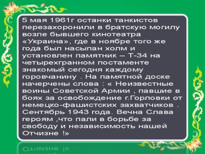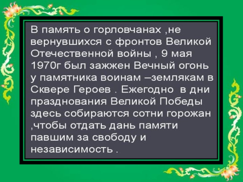 Слайд 1Презентация на тему : “Памятники Горловки”