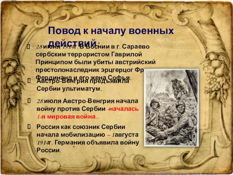 28 июля Австро-Венгрия начала войну против Сербии -началась 1-я мировая война..