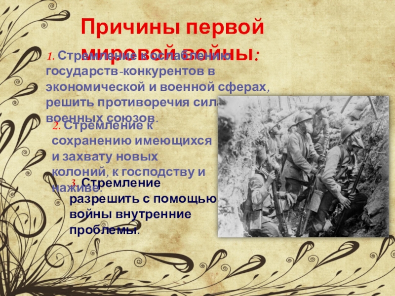 2. Стремление к сохранению имеющихся и захвату новых колоний, к господству и наживе.