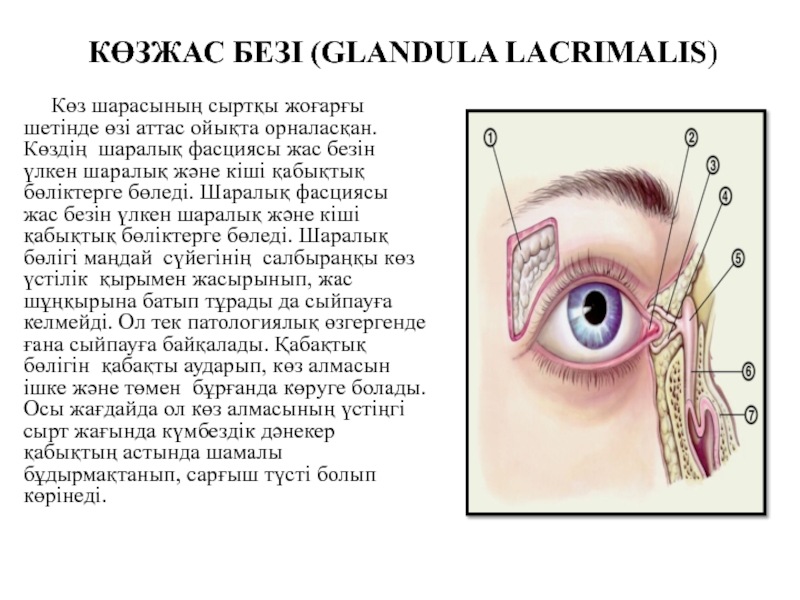 Слайд 5 Көз шарасының сыртқы жоғарғы шетінде өзі аттас