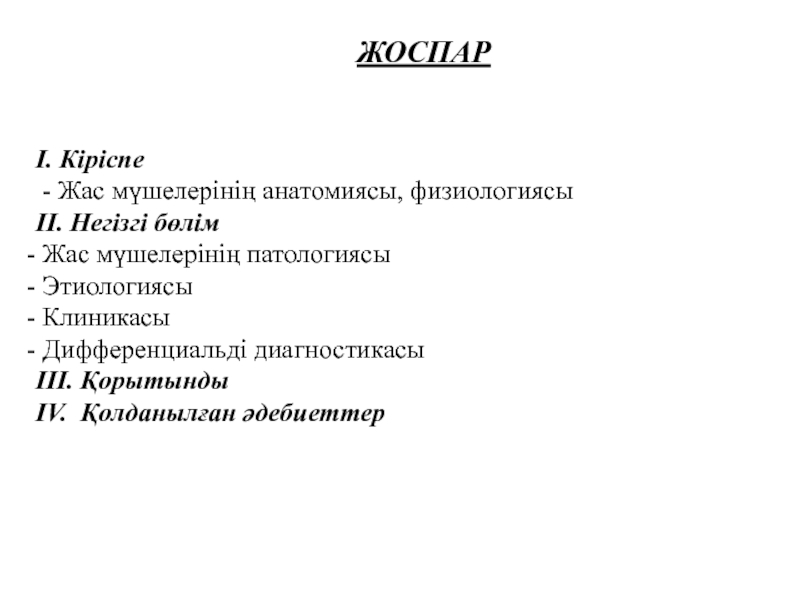 - Жас мүшелерінің анатомиясы, физиологиясы