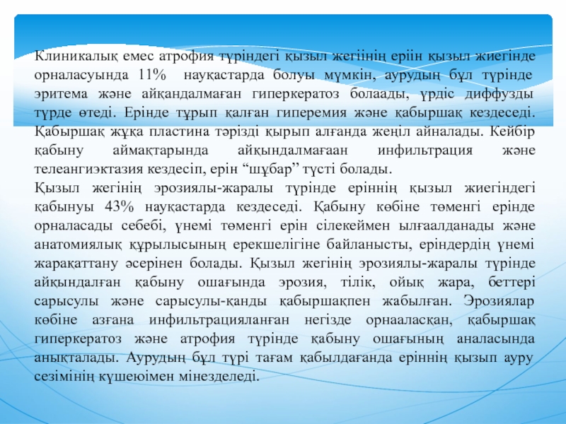 Слайд 8Клиникалық емес атрофия түрiндегi қызыл жегiiнiң ерiiн қызыл жиегiнде орналасуында