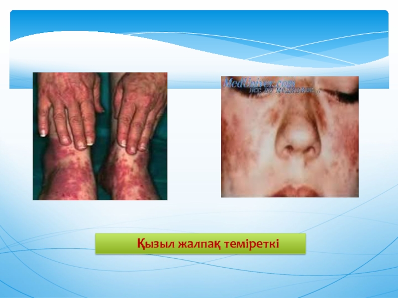Слайд 10Қызыл жегi ауруын Вуд лампасымен жарықтандырғанда әдеттегi түрiндегi қабыну ошағы