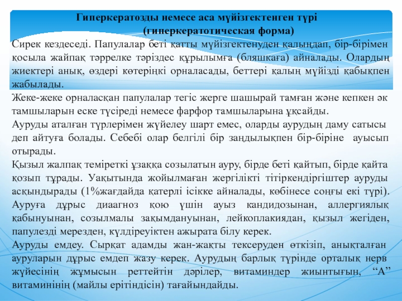 Қызыл жалпақ темiртектi (красный плоский лишай) терi мен