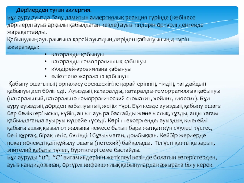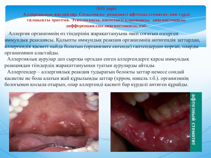 Аллергиялық жағдайлар. Созылмалы рецидивті афтозды стоматит, көп түрлі талшықты