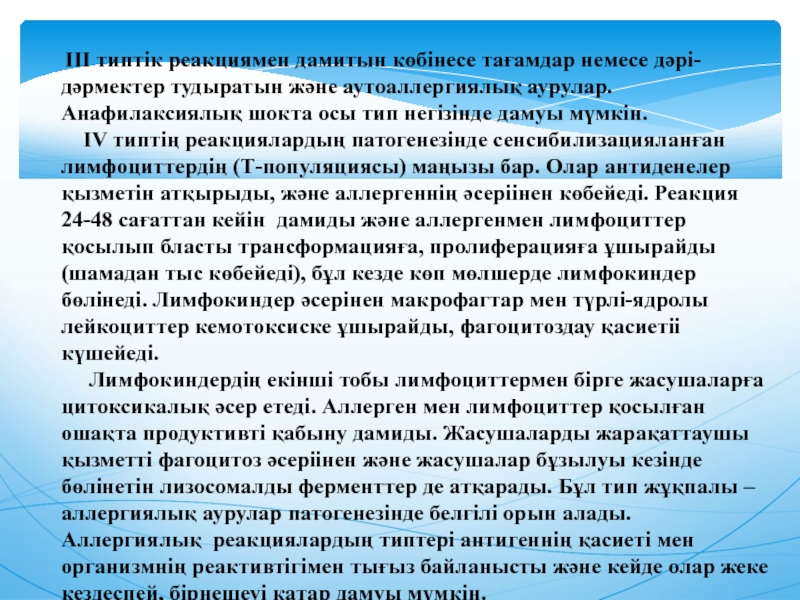 Слайд 6 III типтiк реакциямен дамитын көбiнесе тағамдар немесе дәрi-дәрмектер тудыратын