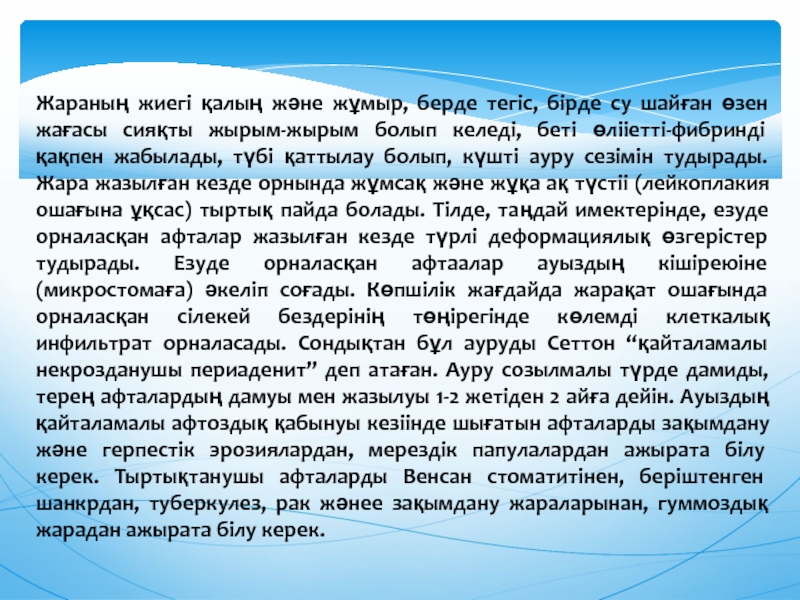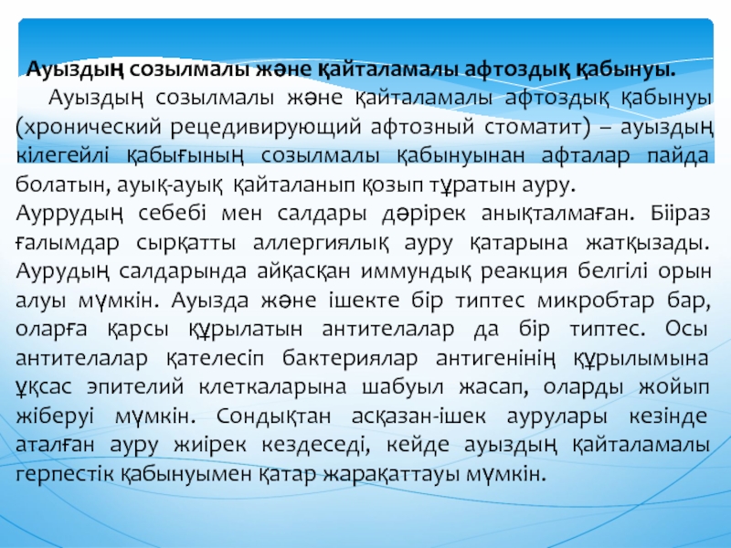 Слайд 13 Ауыздың созылмалы және қайталамалы афтоздық қабынуы.