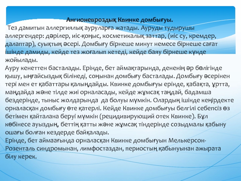 Слайд 10Ангионевроздық Квинке домбығуы.