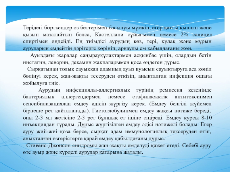 Слайд 31Терiдегi бөрткендер өз беттерiмен басылуы мүмкiн, егер қатты қышып және