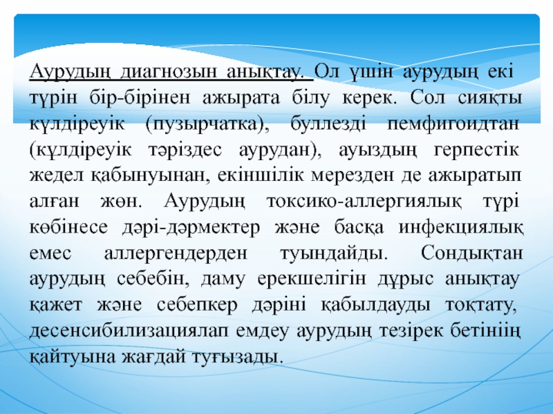 бiлу керек. Сол сияқты күлдiреуiк (пузырчатка), буллездi пемфигоидтан (кұлдiреуiк тәрiздес