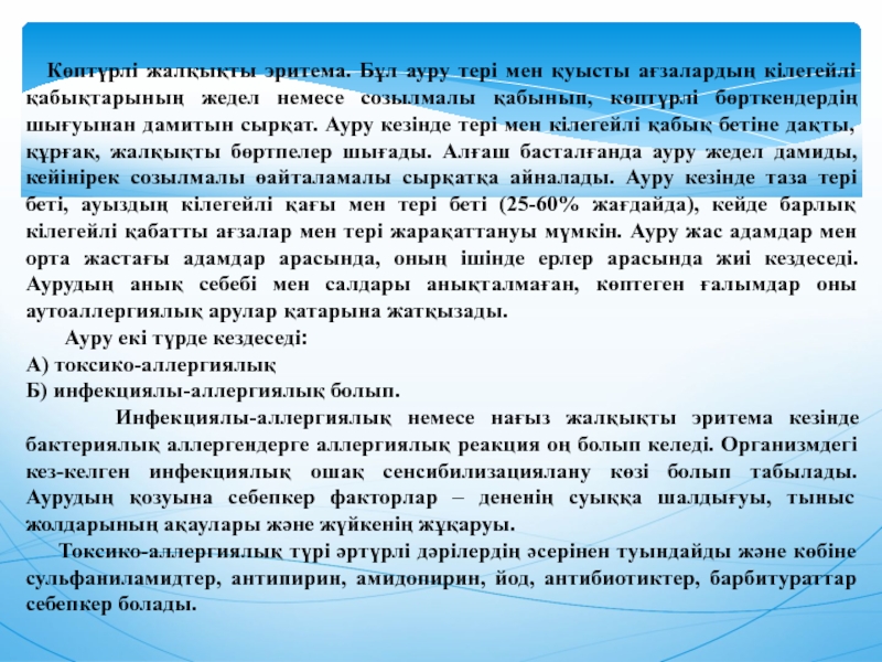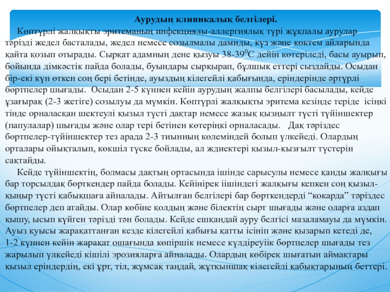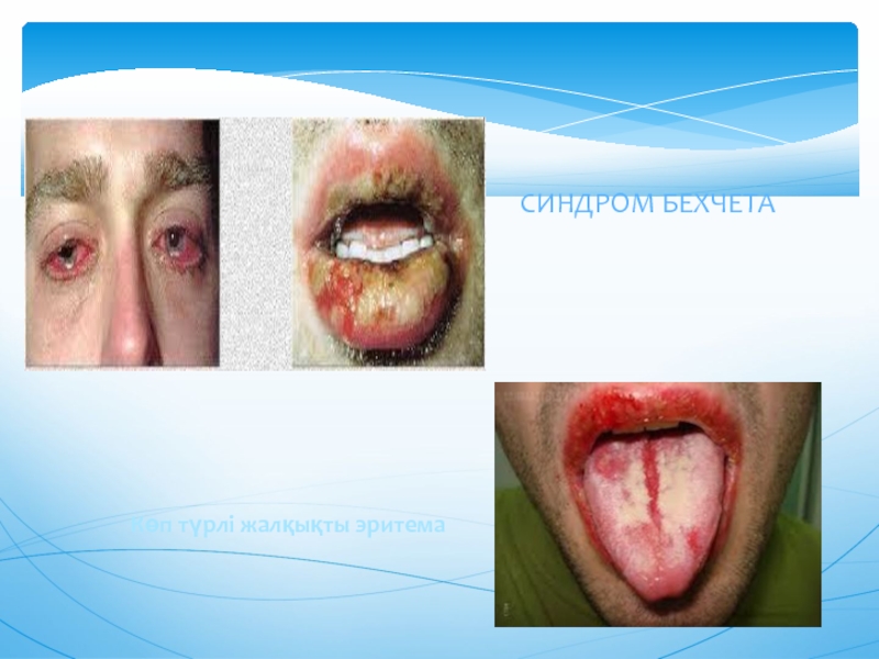Слайд 21 Көптүрлi жалқықты эритема. Бұл ауру терi мен қуысты