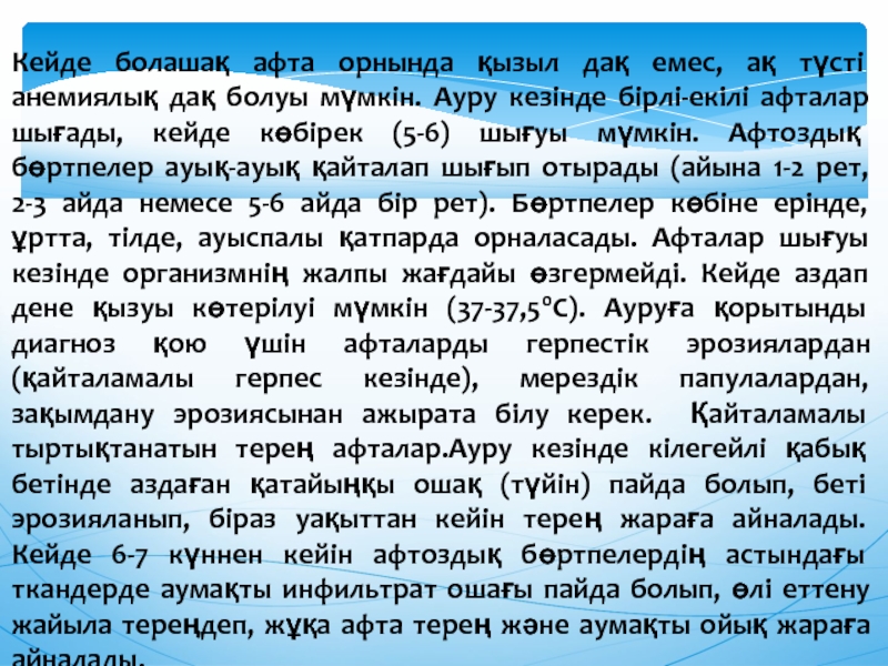 дақ болуы мүмкiн. Ауру кезiнде бiрлi-екiлi афталар шығады, кейде көбiрек