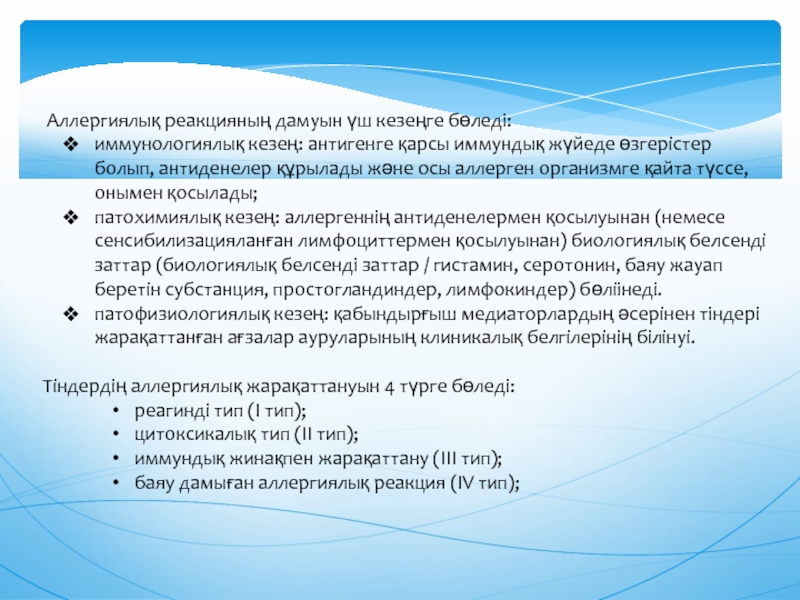 Аллергиялық реакцияның дамуын үш кезеңге бөледi: