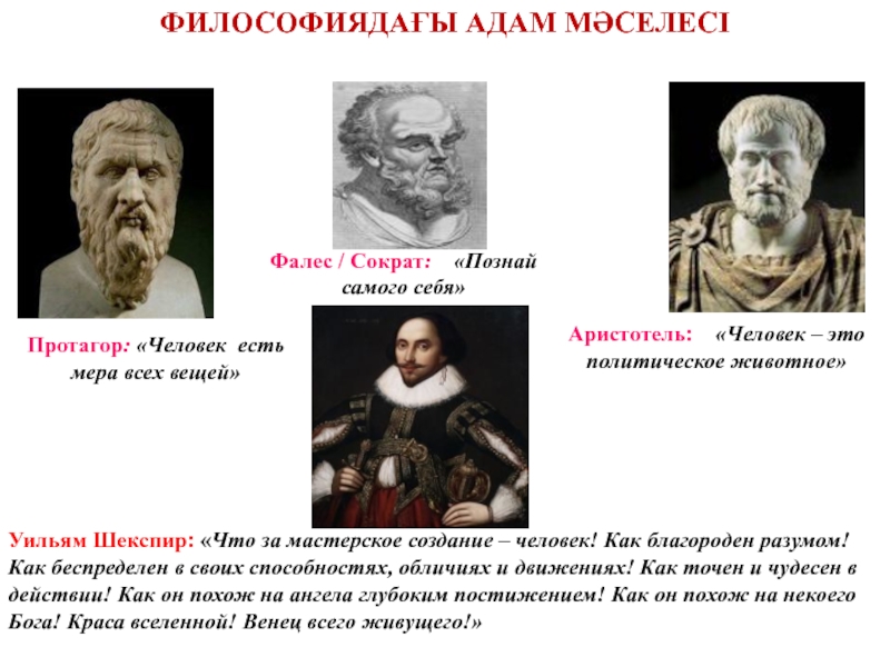 ФИЛОСОФИЯ ПӘНІНІҢ ЕҢ БАСТЫ ЗЕРТТЕУ ОБЪЕКТІСІ – АДАМ болып табылады.