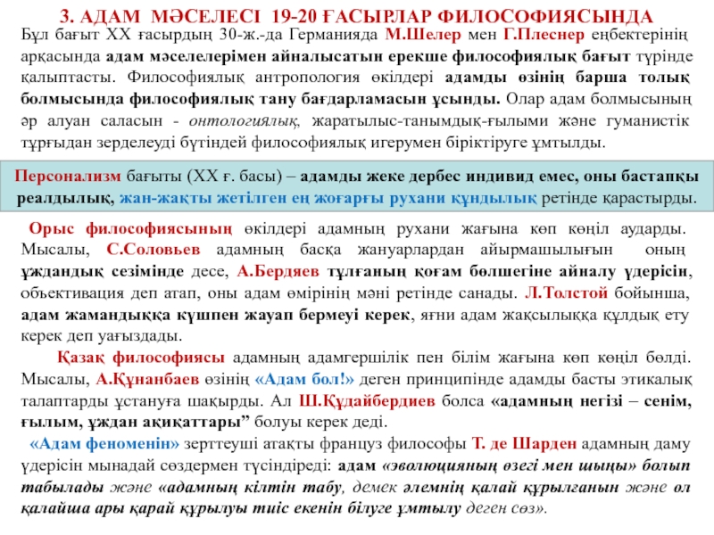 ФИЛОСОФИЯЛЫҚ АНТРОПОЛОГИЯ мен ПЕРСОНАЛИЗМ деп аталады.