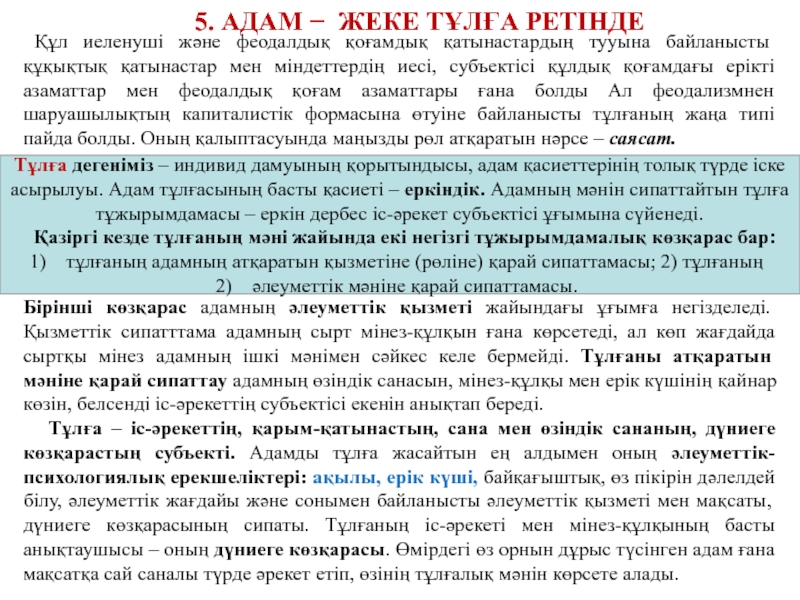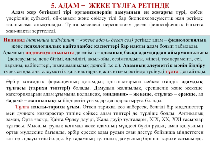 5. АДАМ ЖЕКЕ ТҰЛҒА РЕТІНДЕ