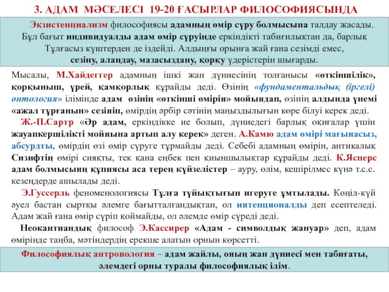 Экзистенциализм философиясы адамның өмір сүру болмысына талдау жасады.