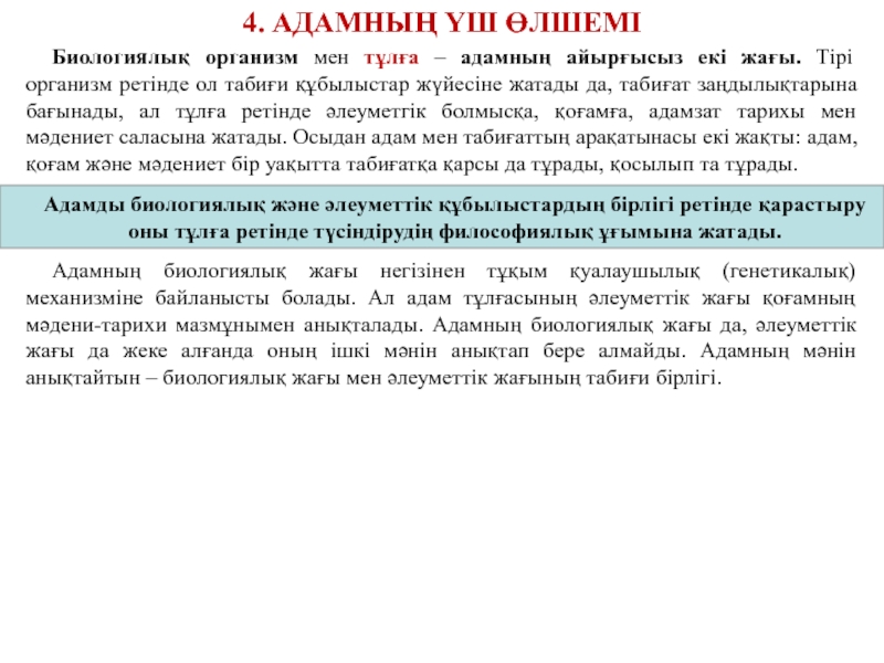 Адамды биологиялық және әлеуметтік құбылыстардың бірлігі ретінде қарастыру