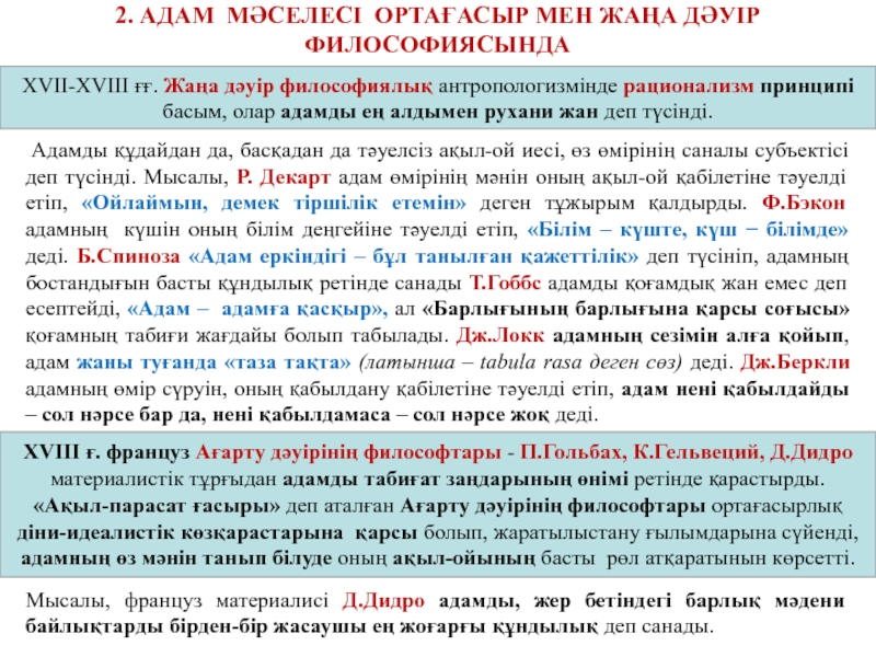 XVII-XVIII ғғ. Жаңа дәуір философиялық антропологизмінде рационализм принципі