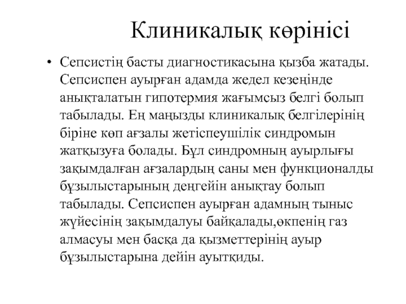 қызба жатады. Сепсиспен ауырған адамда жедел кезеңінде анықталатын гипотермия жағымсыз
