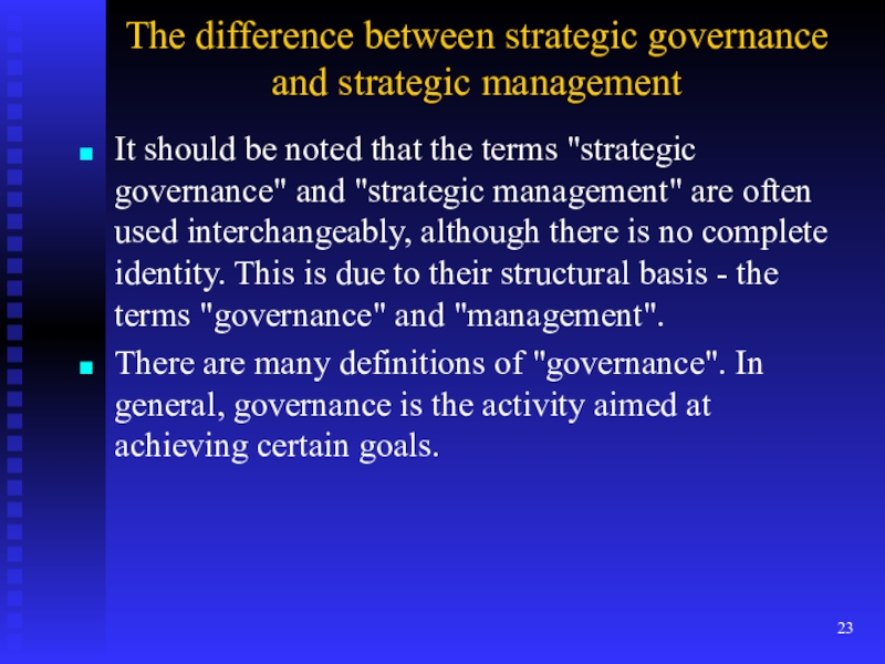 Strategic management is treated as a broader concept: in addition to the strategic planning, it includes the implementation of strategies and strategic control.