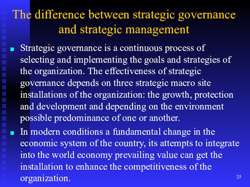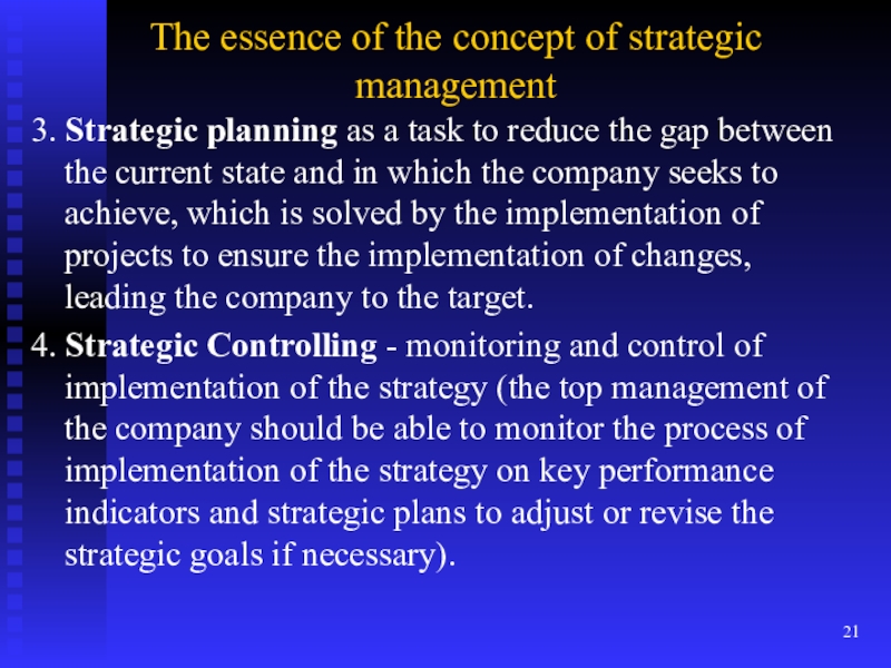 the effectiveness of strategic management depends on three strategic guidelines of the company: growth, protection and development;