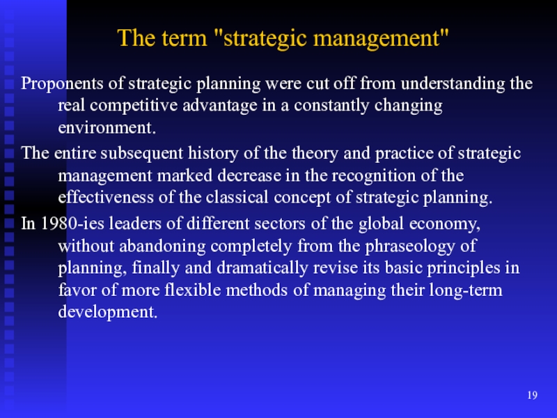 (both in theory and in practice) is replaced in the 1980s by the term the strategic management.