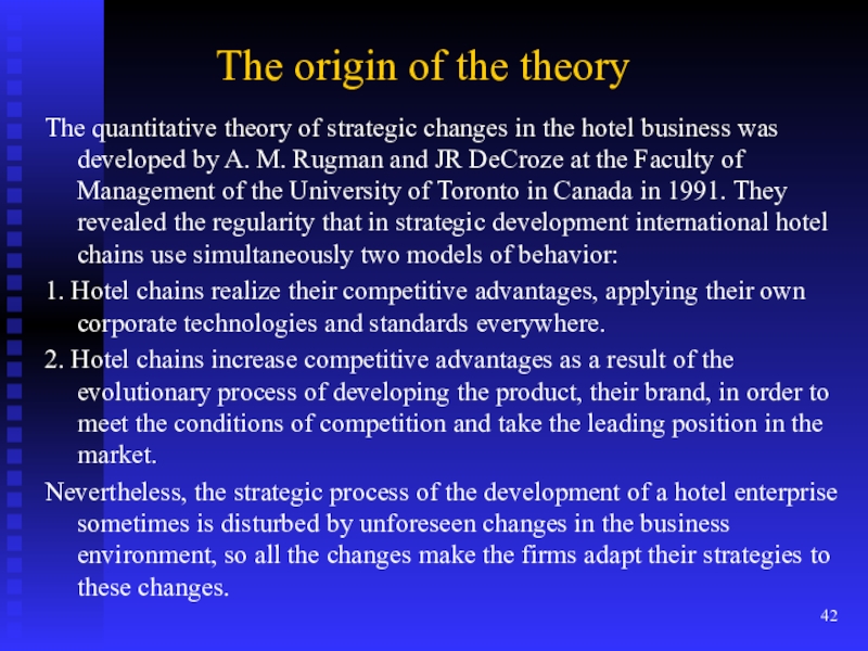 Слайд 41The quantitative theory of strategic changes in the hotel business