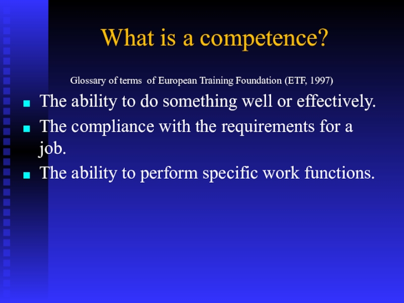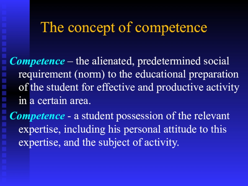 Competence - a student possession of the relevant expertise, including his personal attitude to this expertise, and the subject of activity.