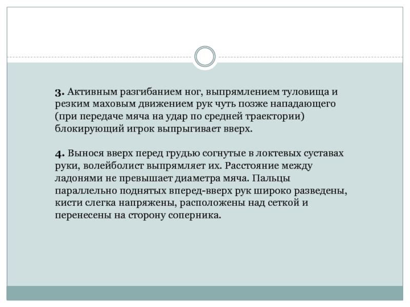средней траектории) блокирующий игрок выпрыгивает вверх.