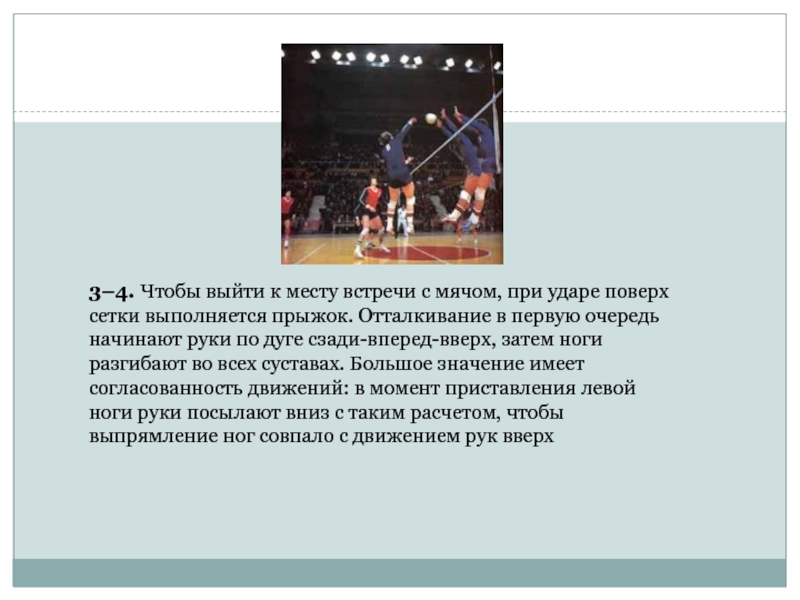 Слайд 83–4. Чтобы выйти к месту встречи с мячом, при ударе