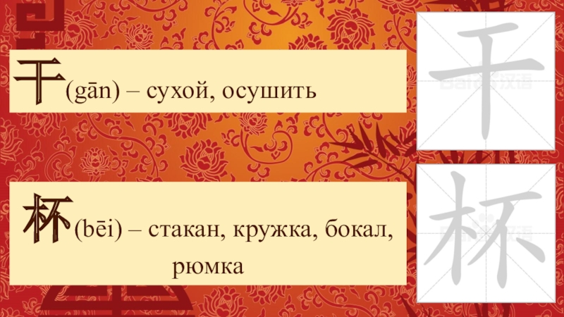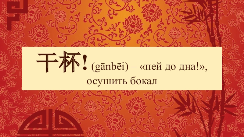 Слайд 70干杯! (gānbēi) – «пей до дна!», осушить бокал