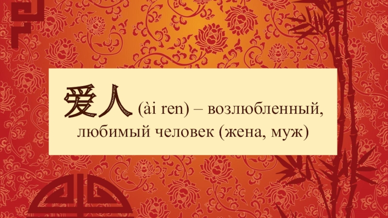 Слайд 56爱人 (ài ren) – возлюбленный, любимый человек (жена, муж)