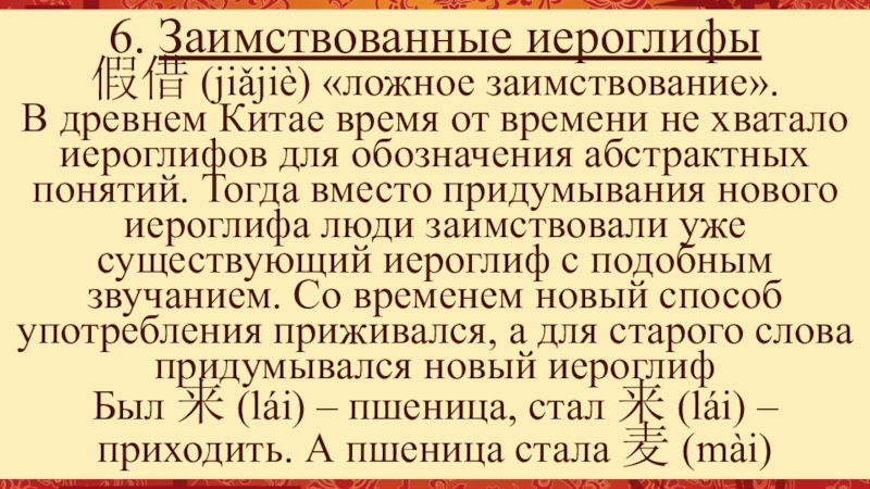 времени не хватало иероглифов для обозначения абстрактных понятий. Тогда вместо