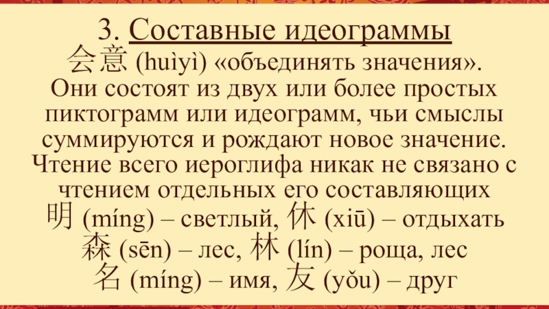 более простых пиктограмм или идеограмм, чьи смыслы суммируются и рождают