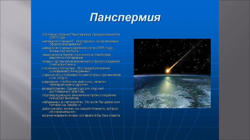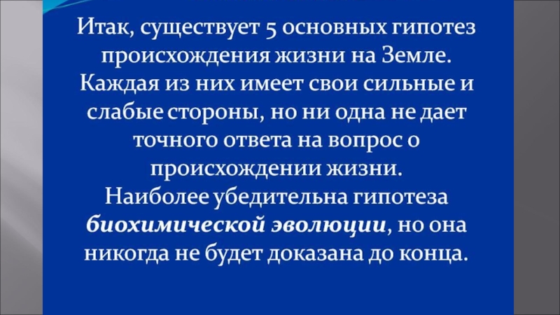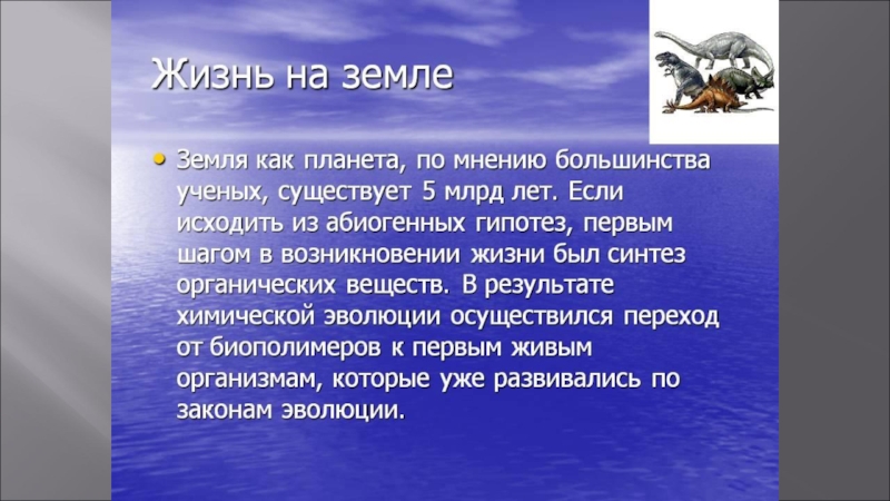 Слайд 1ПРЕЗЕНТАЦИЯ НА ТЕМУ: «ВОЗНИКНОВЕНИЕ ЖИЗНИ НА ЗЕМЛЕ»