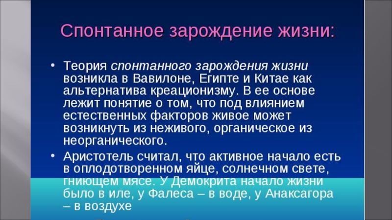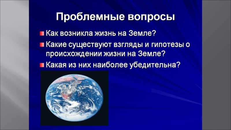 ПРЕЗЕНТАЦИЯ НА ТЕМУ:  «ВОЗНИКНОВЕНИЕ ЖИЗНИ НА ЗЕМЛЕ»