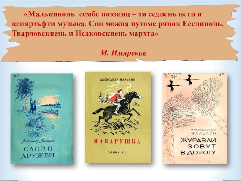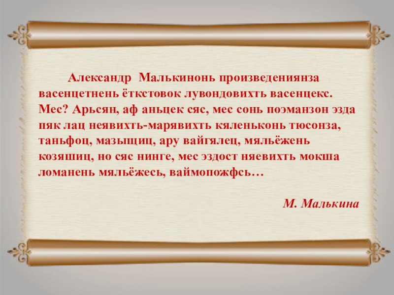 Слайд 13Александр Малькинонь произведениянза васенцетнень ёткстовок лувондовихть васенцекс. Мес? Арьсян, аф