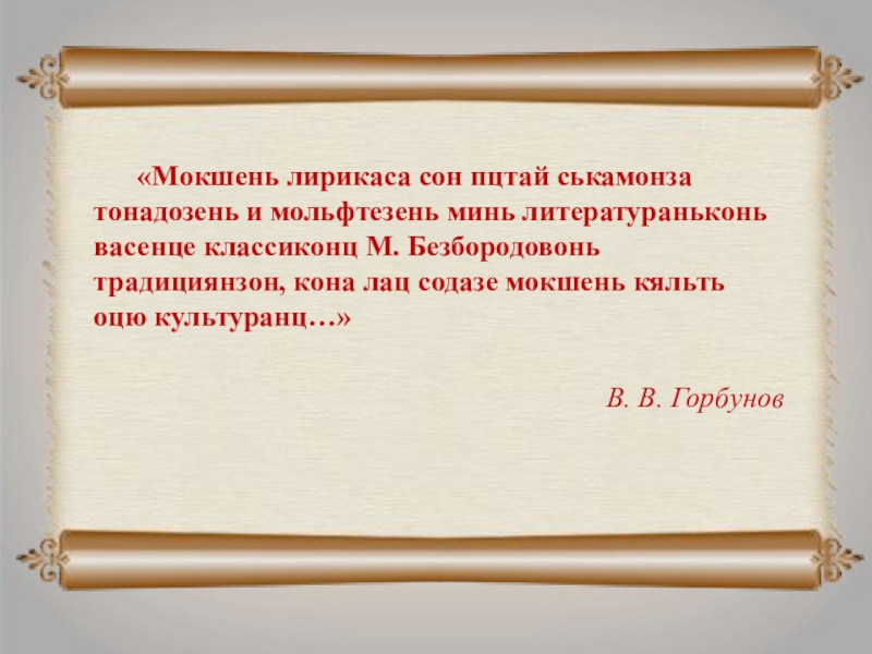 васенце классиконц М. Безбородовонь традициянзон, кона лац содазе мокшень кяльть