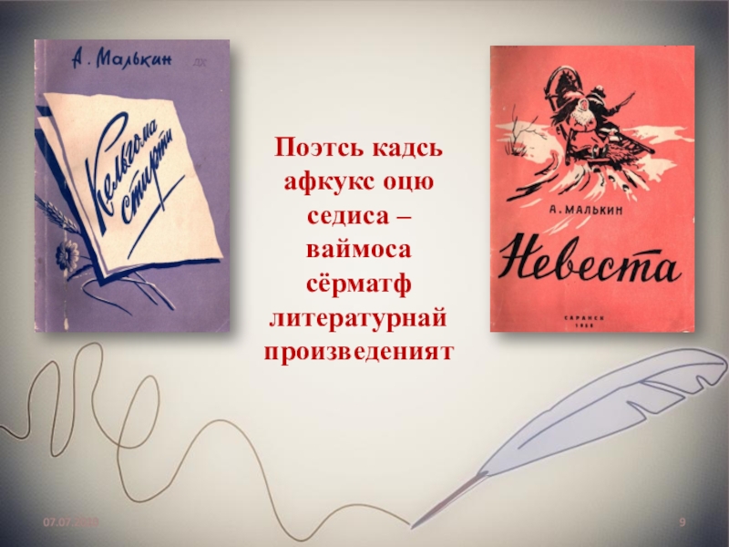Слайд 9Поэтсь кадсь афкукс оцю седиса – ваймоса сёрматф литературнай произведеният
