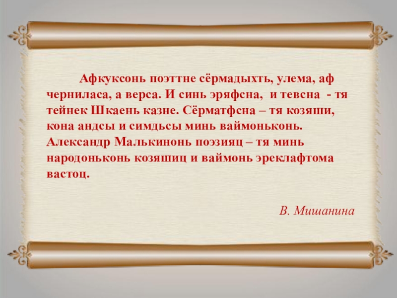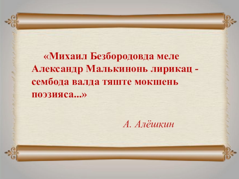 Слайд 17 «Михаил Безбородовда меле Александр Малькинонь лирикац - сембода валда тяште
