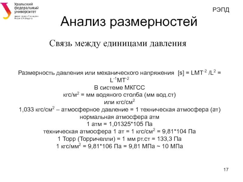 ![1. Анализ размерностей Анализ размерностейРЭПДСвязь между единицами давленияРазмерность давления или механического напряжения [s] = Анализ размерностейРЭПДСвязь между единицами давленияРазмерность давления или механического напряжения [s] = LMT-2 /L2 = L-1MT-2 В системе](/img/tmb/3/259754/b1969a5057a575d5c4dcf3d86f277465-800x.jpg)