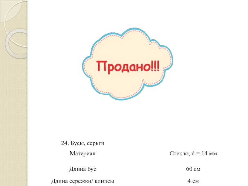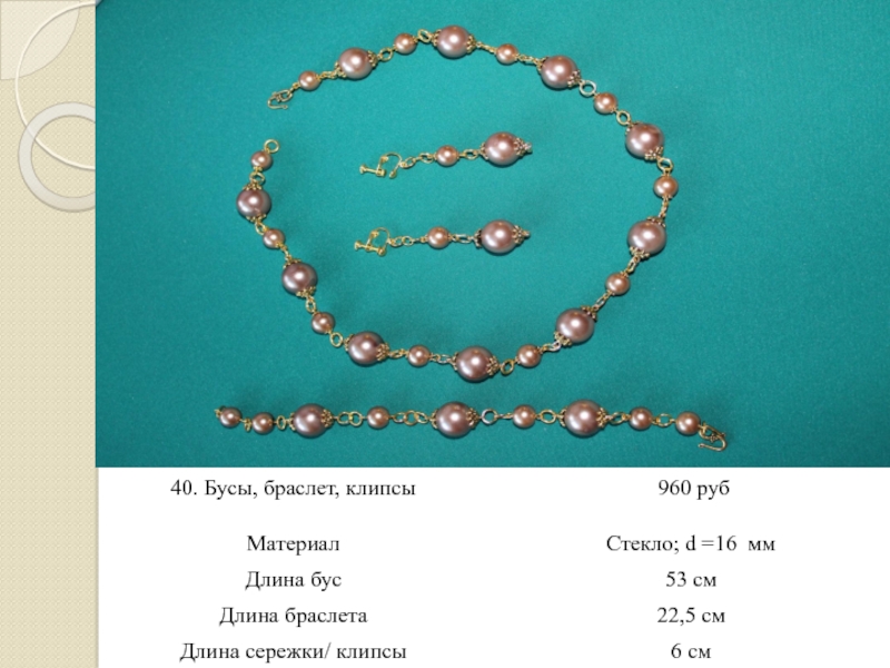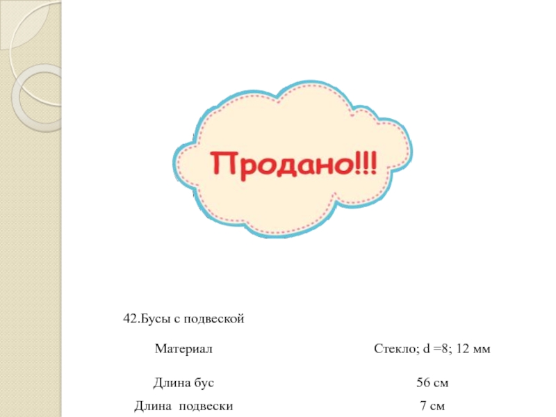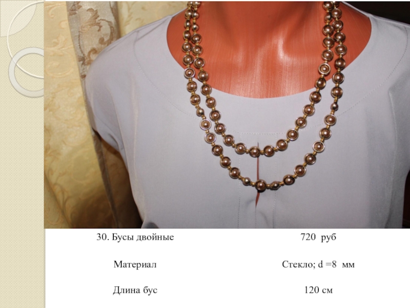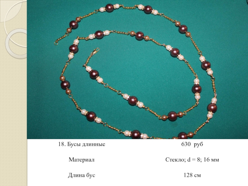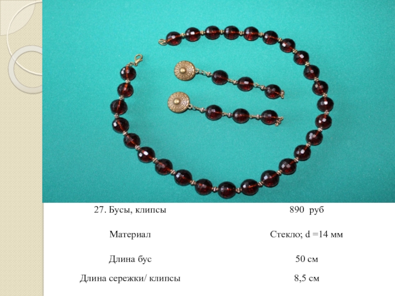 1. Бусы Материал Стекло ; d = 10мм Длина бус 50 см