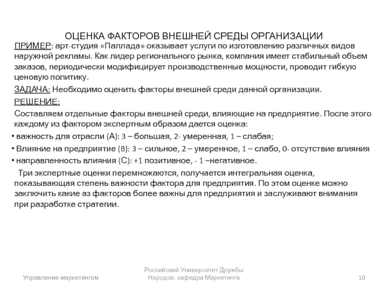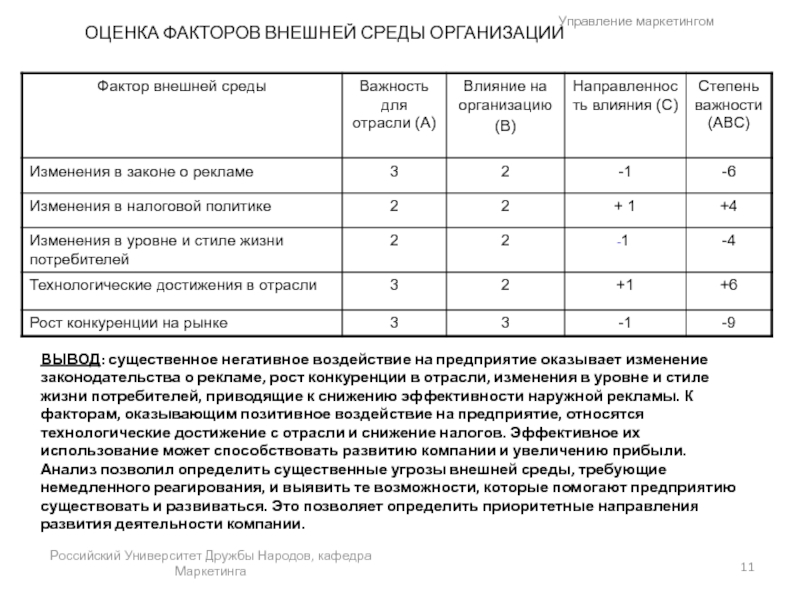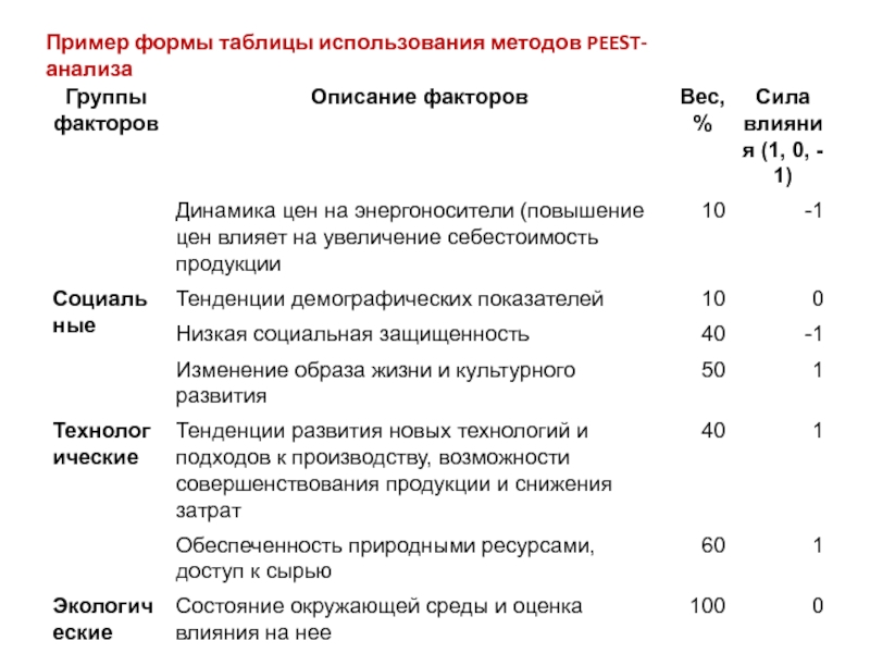 Для выполнения задания: составьте перечень возможных факторов внешней среды , действующих на данное предприятие; оцените по каждому из факторов важность для отрасли, влияние на предприятие, направленность влияния; рассчитайте интегральную оценку и сделайте выводы.
