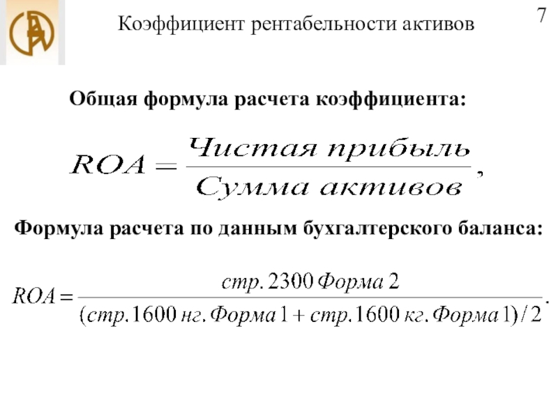 Формула расчета по данным бухгалтерского баланса: