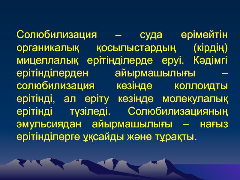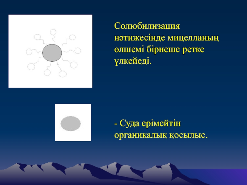 Слайд 11Солюбилизация – суда ерімейтін органикалық қосылыстардың (кірдің) мицеллалық ерітінділерде еруі.