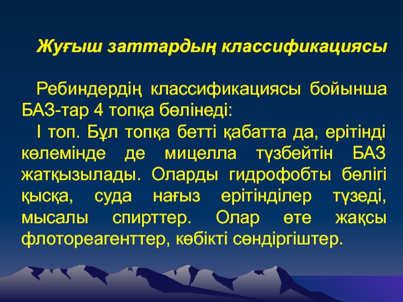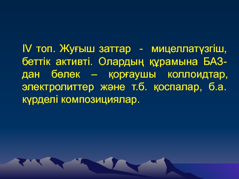 Слайд 21IV топ. Жуғыш заттар - мицеллатүзгіш, беттік активті. Олардың құрамына